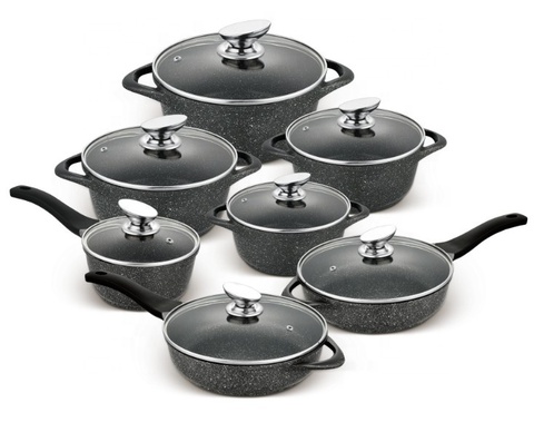 Çevre dostu granit yapışmaz kaplama alüminyum pres döküm İndüksiyon Pot ve tavalar Set yapışmaz TENCERE SETİ
